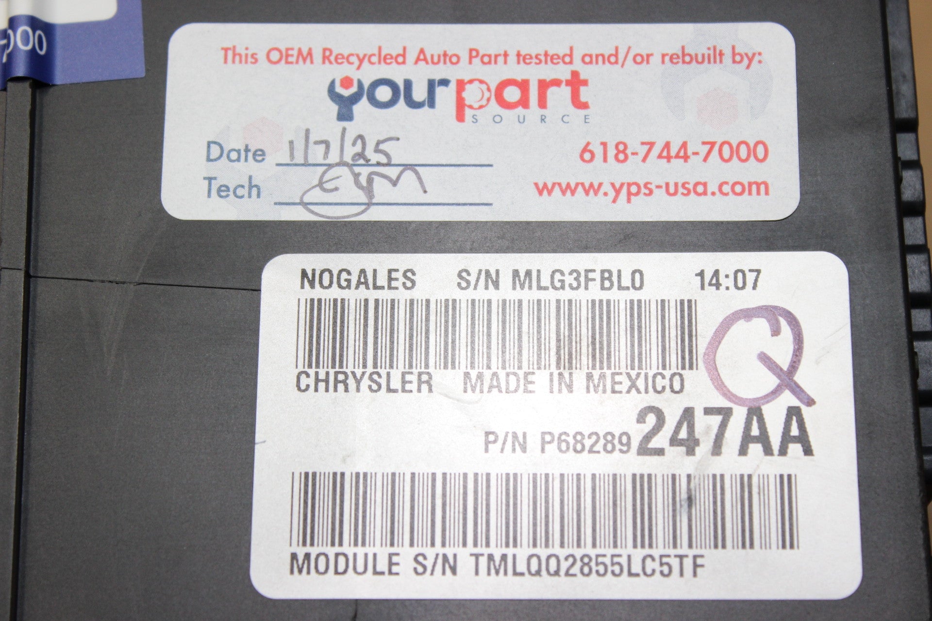 68289247 - This TIPM will work for all software codes AA through AB as long as your part number is 68289247. YOU MUST MESSAGE US AFTER PURCHASE WITH YOUR VIN FOR PROGRAMMING!